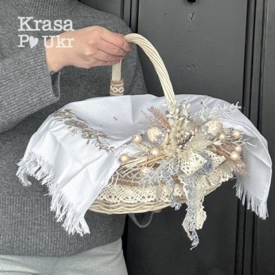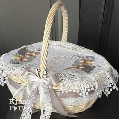 КОМПЛЕКТ – пасхальний кошик середній 34 см, дизайн “мінімалізм” у сірому + серветка на вибір