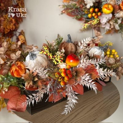 Осінній вінок на двері, дизайн “жовтневий затишок”