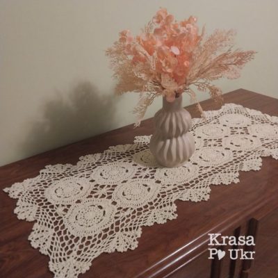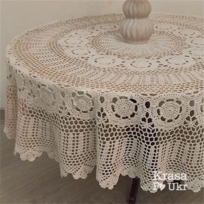 Скатертина “ажурна” гачкована на круглий стіл – 1,1 м, 1,5 м, 1,8 м