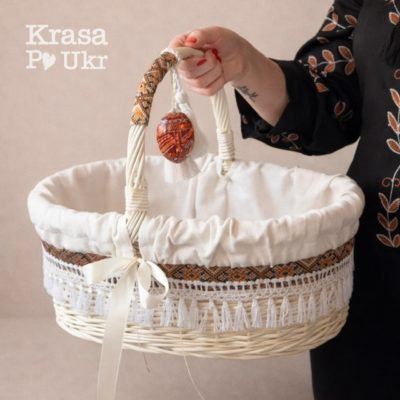 Великодній кошик 34 см або 40 см, дизайн “вишитий мінімалізм” (з чохлом або без)