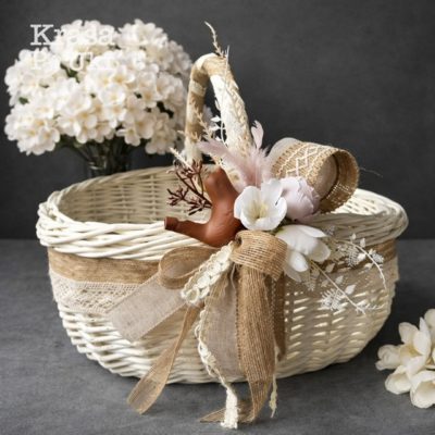 Кошик на Великдень з декором у дизайні “етно мінімалізм” з вишитою стрічкою (35 см)