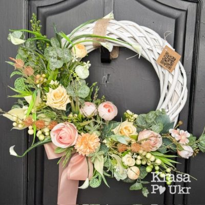 Вінок 37 см на лозі, дизайн “поцілунки пастелі”