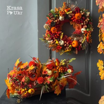 Осінній вінок на двері, дизайн «теплі відтінки»