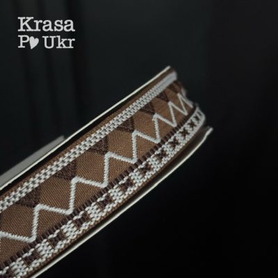 #24 Стрічка 2,2 см з вишивкою “стильна геометрія” у коричнево-молочному поєднанні – 1 м, 23 м