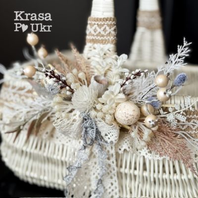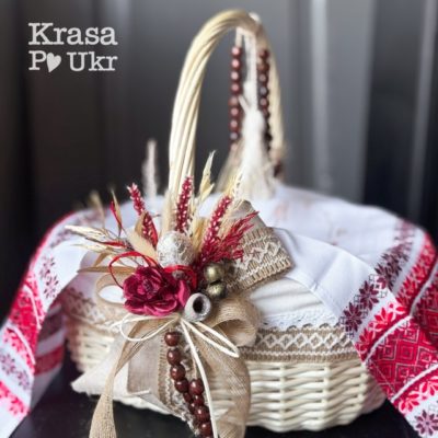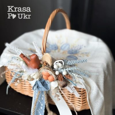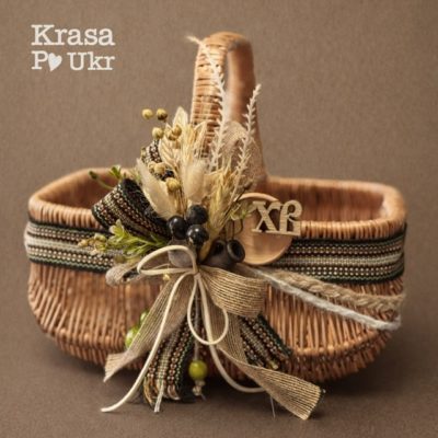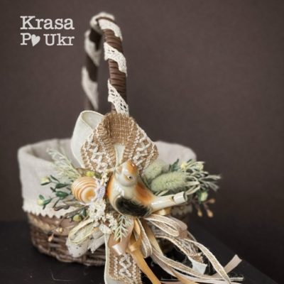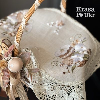 Кошик на Великдень в етно стилі, дизайн “беж та шоколад” з чохлом (34 см) – коричневий або вибілений