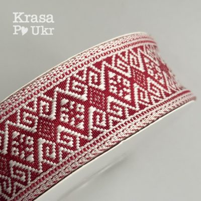 #48 Стрічка текстильна 3,2 см “українська вишиванка” в червоно-білому