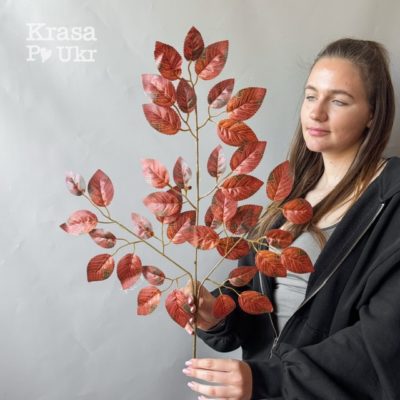 Гілка 50 см з листям у осінньому забарвленні, теракот