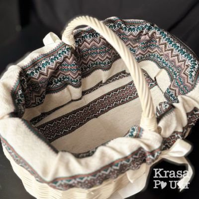 Вибілена корзина «перлова-прямокутна» (35 см) + вишитий чохол (з серветкою або без)