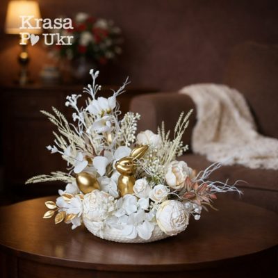 У цій категорії ви можете підібрати композицію для дому, роботи чи на подарунок. Можливий повтор проданих композицій з мінімальними змінами на замовлення, а також виготовлення схожих без великодньої атрибутики.