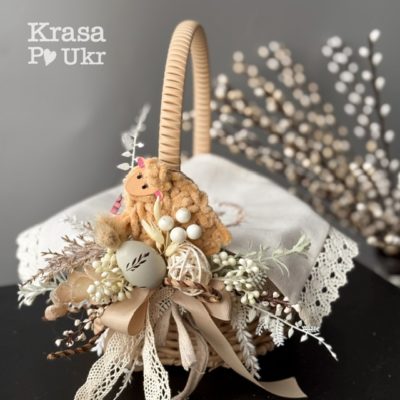 Комплекти кошиків з серветками, свічками, прикраса на вербу