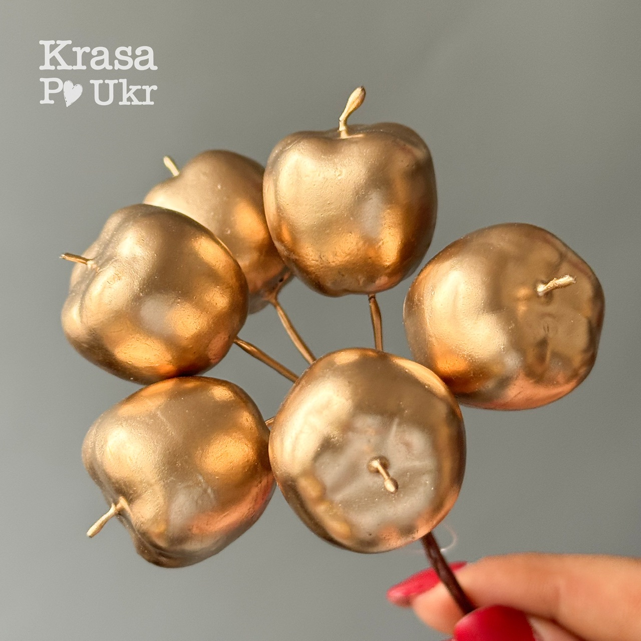 Яблука на дротику, 6 шт, 12 см, матове золото
