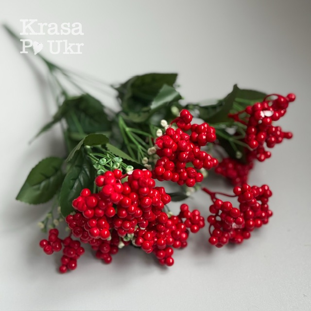#568 Букет 35 см або гілка штучної червоної декоративної калини для декору