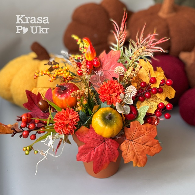 Осіння композиція 34 см у кашпо, “осінній букет”