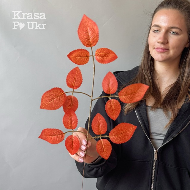 Гілка 50 см з листям у осінньому забарвленні, теракот
