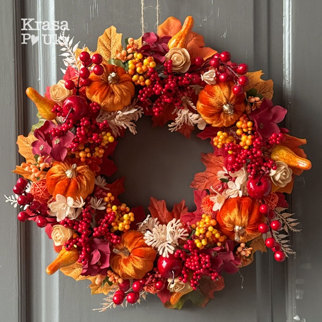 1 відгук для Осінній вінок з велюровими гарбузами, дизайн “вишукана осінь”