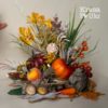 Казкова осіння композиція з керамічним їжачком та возиком ручної роботи — це справжній витвір осіннього натхнення. У ній гармонійно поєднані природні матеріали, жолудеві шапочки, сухоцвіти, міні-гарбузики та осіння зелень. Композиція створює атмосферу тепла й затишку, наповнюючи духом осені. Ідеально підійде як поробка для школи чи садка на свято осені, а також як декоративний акцент для дому або подарунок з осіннім настроєм.