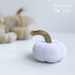 Матеріал – велюр. Висота гарбуза з хвостиком – 8,5 см. Діаметр самого гарбуза до 10 см, висота 5 см. Хвостик натуральний, гарбузовий. Колір – білий..