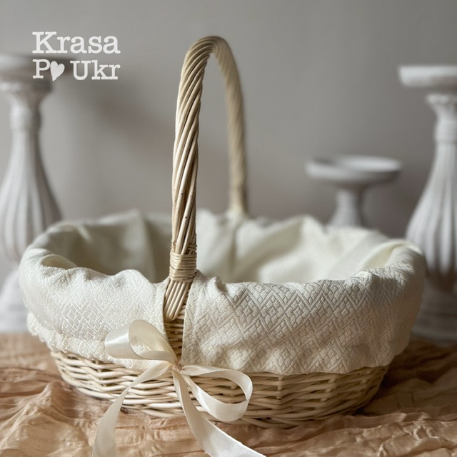 Кошик має універсальне призначення — він ідеально підходить для освячення на Великдень чи Спаса, як декоративний елемент у домі або подарунок. Його можна використовувати у готовому вигляді або прикрасити додатковим декором — стрічками, квітами чи прикрасою від нашої майстерні Krasa Po Ukr.