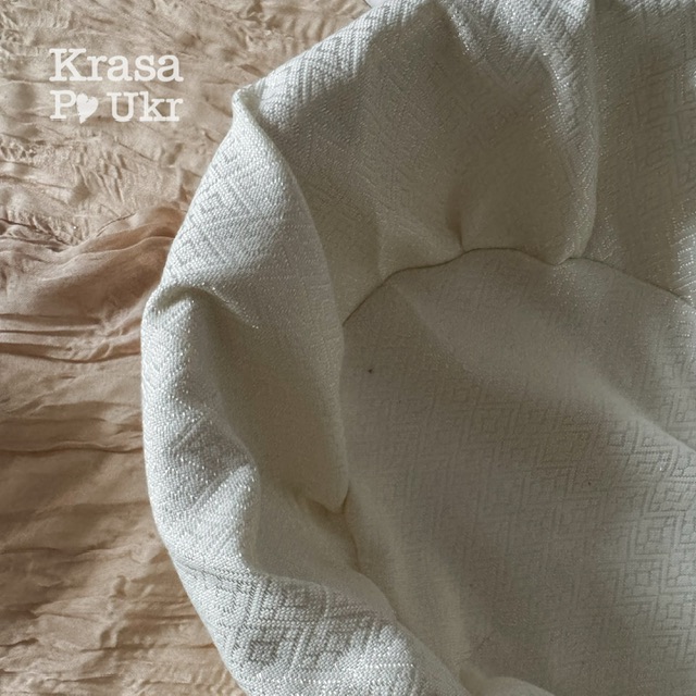 До кошика входить знімний чохол у ніжному молочному кольорі, виготовлений із щільної тканини з ледь помітним візерунком у тон. Такий чохол виглядає особливо елегантно та додає кошику витонченості. Його легко знімати для прання або заміни, а сама тканина приємна на дотик і добре тримає форму.