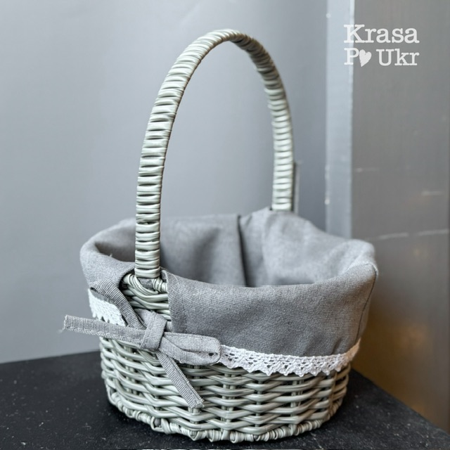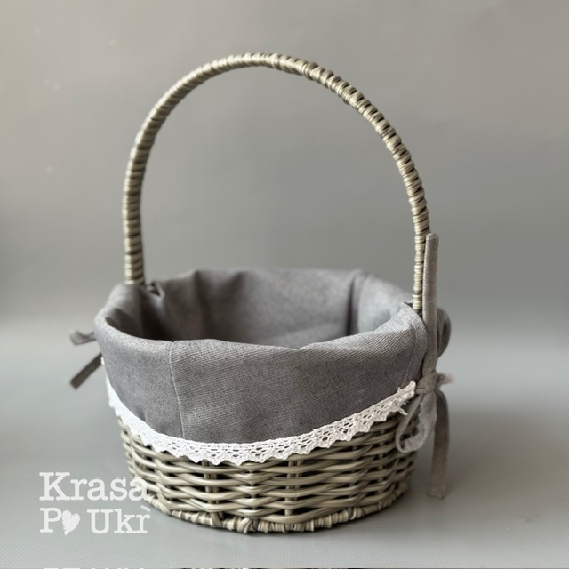 Корзинка з чохлом кругла (19 см) або овальна (15 см) – вінтажно-сіра