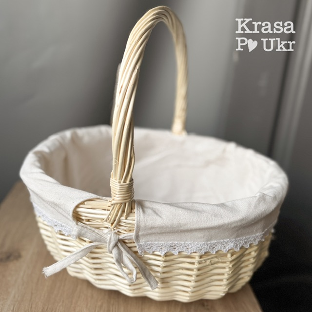 Світлий великодній кошик у теплому молочному відтінку — ідеальний вибір для тих, хто шукає ніжний, охайний та універсальний кошик на Великдень. Корзина виконана з лози вибіленої — саме цей відтінок гармонійно поєднується з класичним святковим вбранням кошика.
