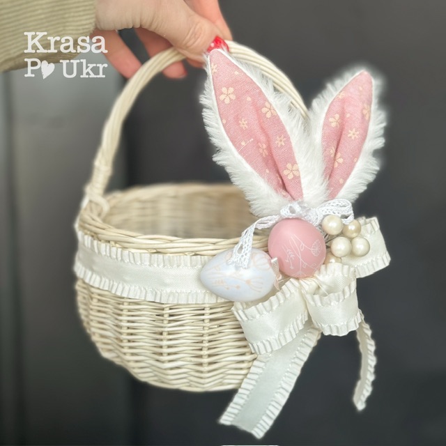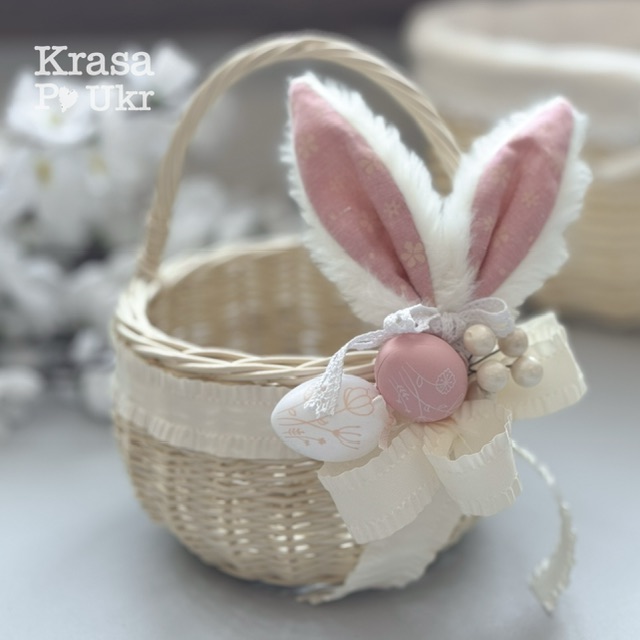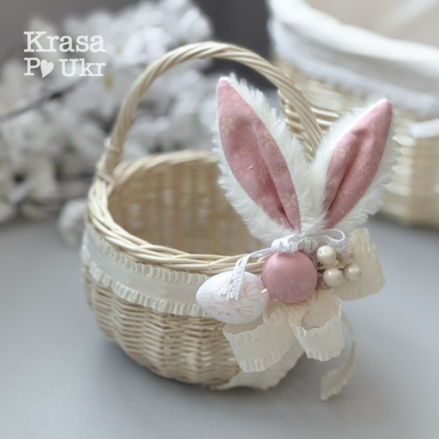 Пасхальна дитяча корзинка для дівчинки, дизайн “вушка кролика” – 15 см або 20 см