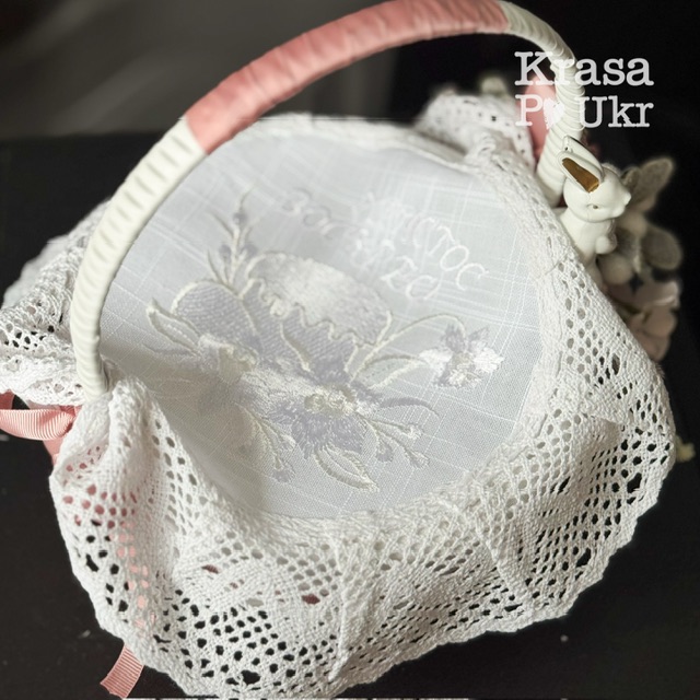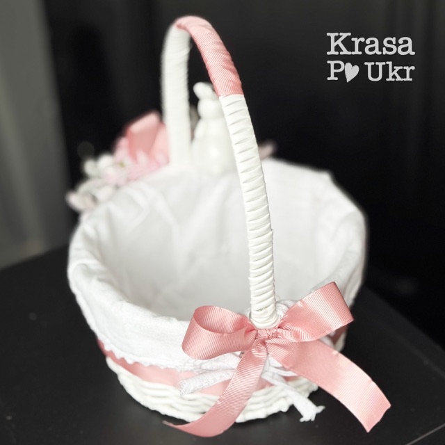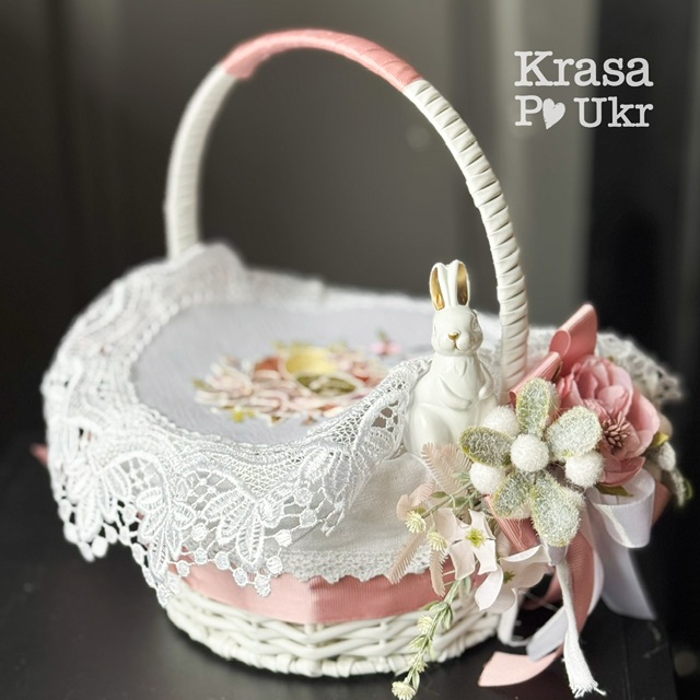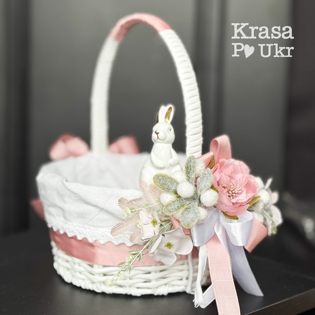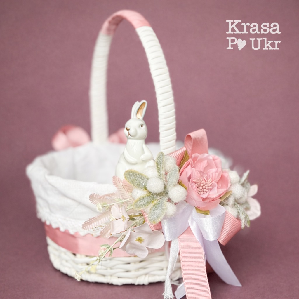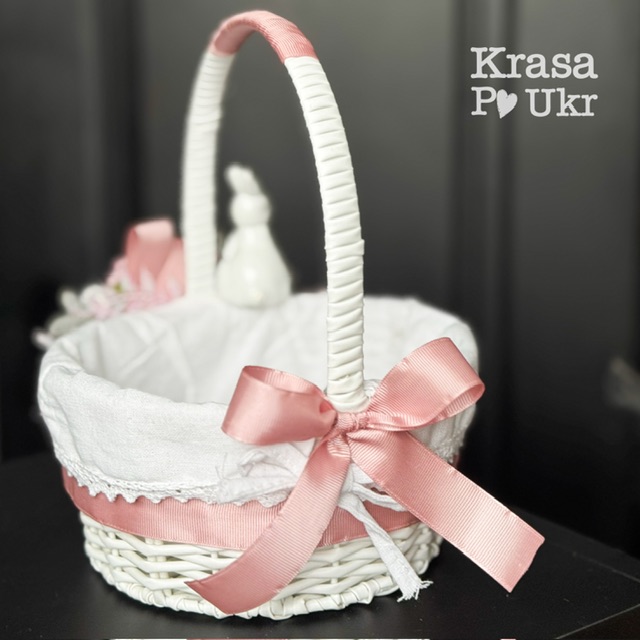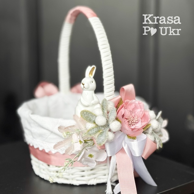Дитячий великодній кошик з чохлом та декором, дизайн “рожевий зайчик” – 19 см