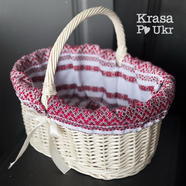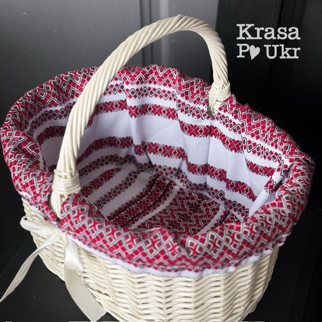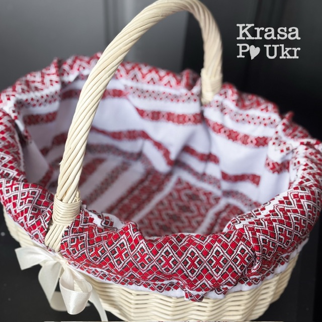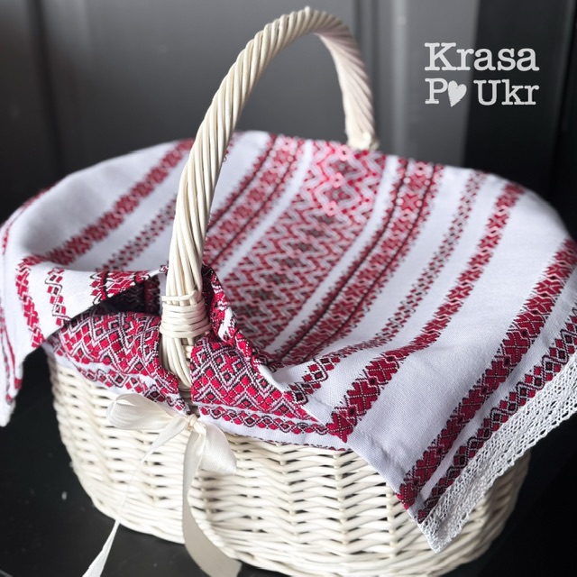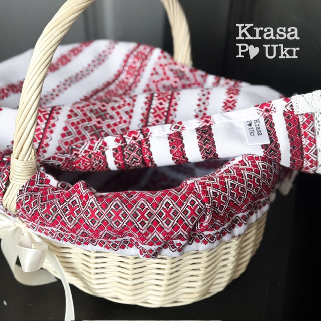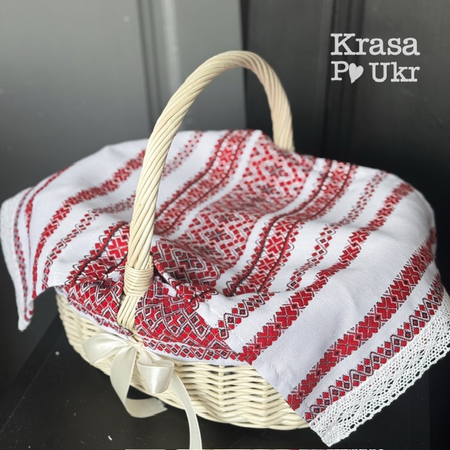 Такий чохол красиво прикрашає великодній кошик та створює святковий і охайний вигляд під час освячення паски. Вишивка виконана у класичному українському орнаменті, що символізує традицію та святковість.