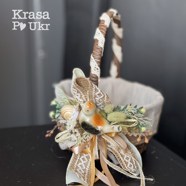 Великодній дитячий кошик в етно стилі “балакуча пташка”, для діток 5-10 років – 19 см (з чохлом)