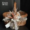 Великодній коричневий кошик з лози з керамічною пташкою, дизайн “стильний етнос”