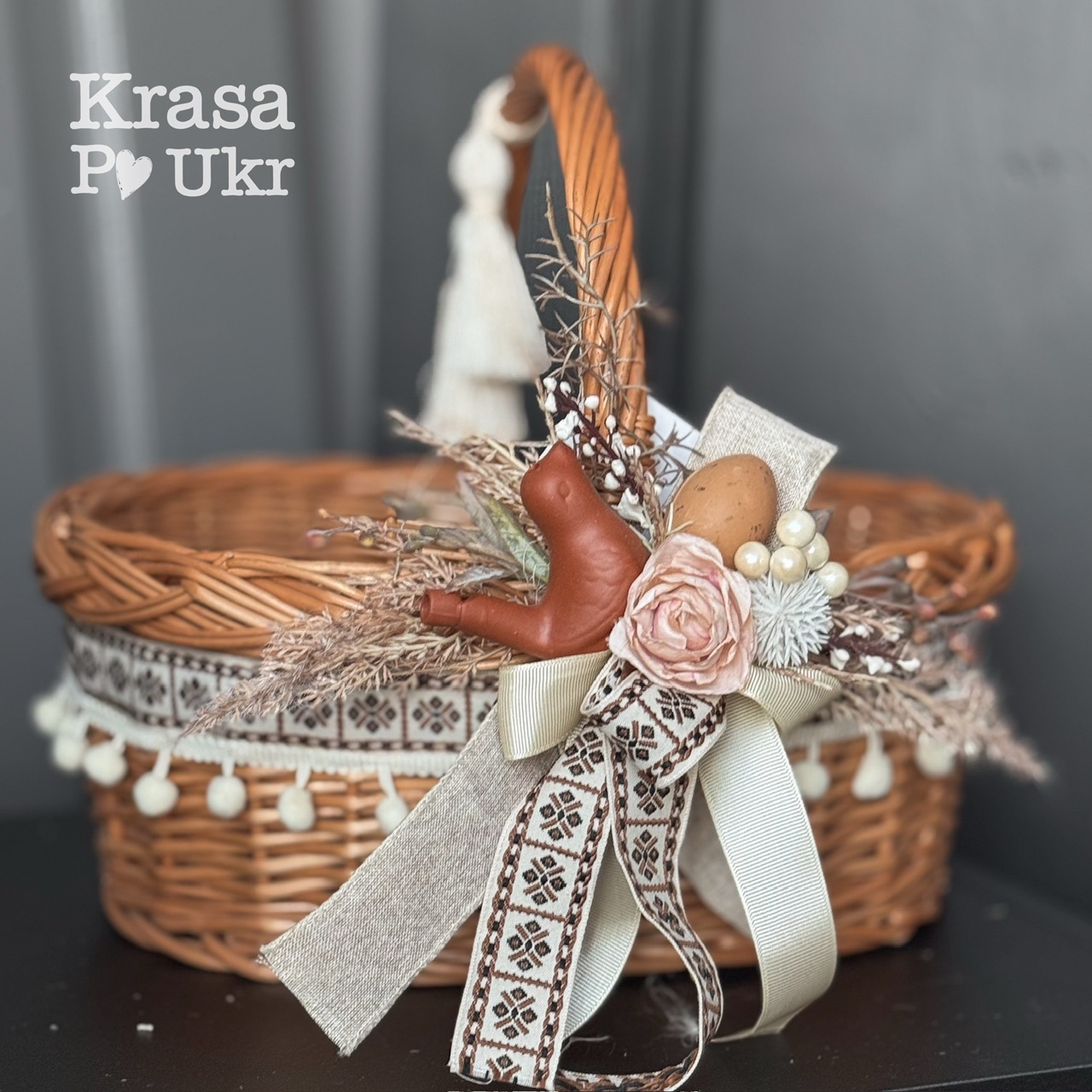 Такий кошик стане ідеальним вибором для освячення у Великдень. Він поєднує натуральні матеріали, ручну роботу та елементи української символіки, тож чудово підійде і як подарунок близьким.