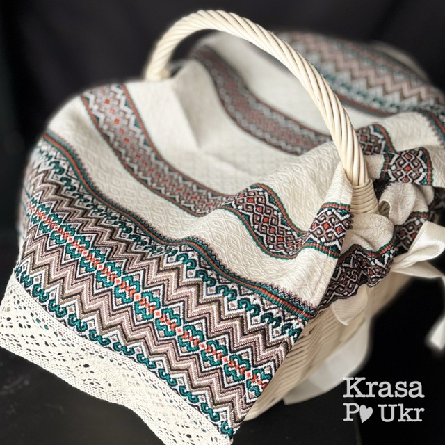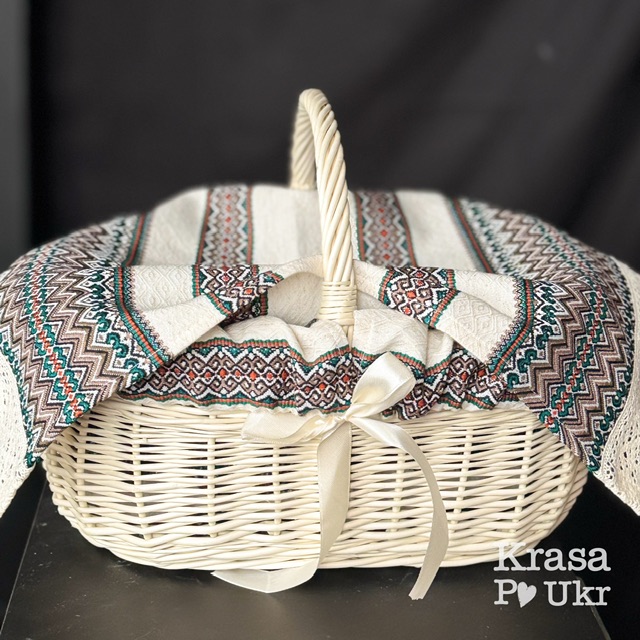 Будьте першим, хто залишив відгук “Вибілена корзина «перлова-прямокутна» (35 см) + вишитий чохол (з серветкою або без)”“