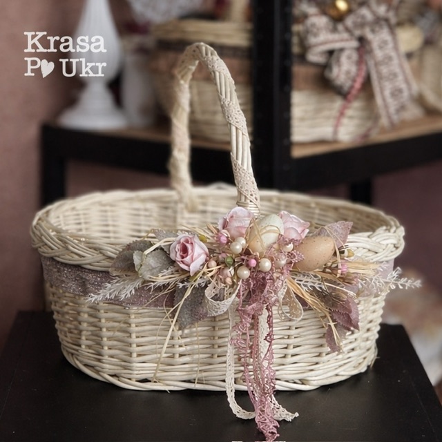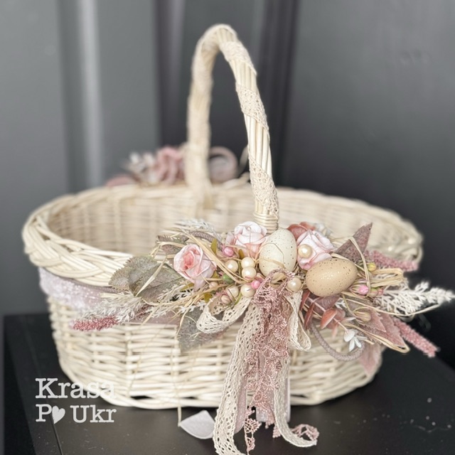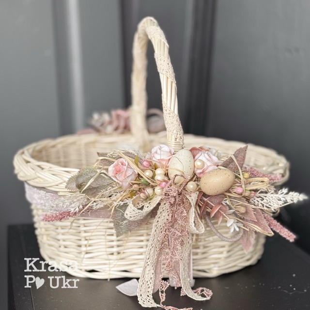 Великодній кошик з декором, дизайн “пудрова симфонія” – середній