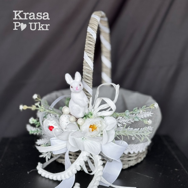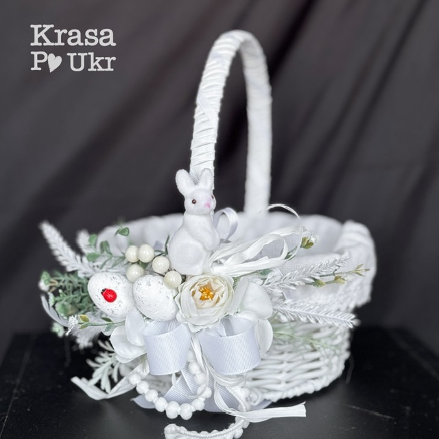 Ніжний дитячий великодній кошик у казковому стилі з декоративним зайченям. Ідеальний варіант для освячення паски, перших великодніх традицій та святкових фото дитини.