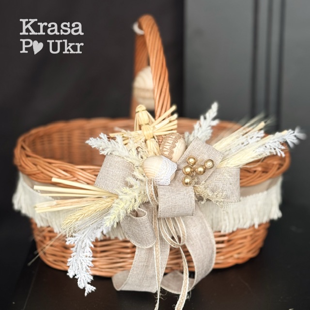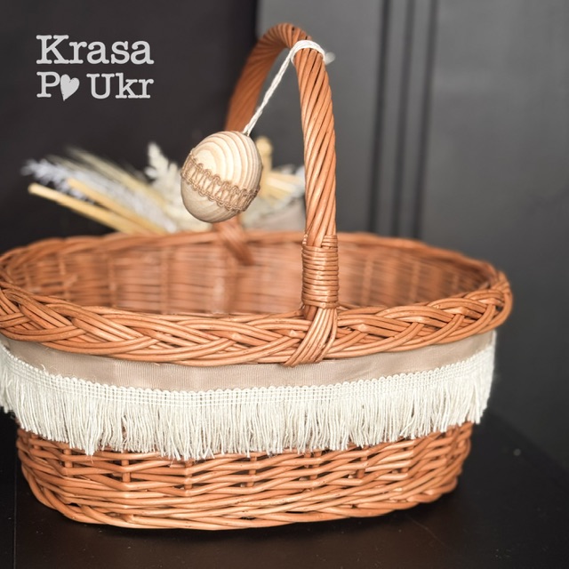 Великодній кошик з соломʼяним ангелом ручної роботи – дизайн “ангел-оберіг” – середній