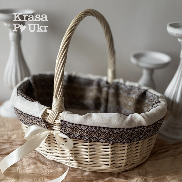 Кошик з чохлом із вишитої тканини, натуральна лоза