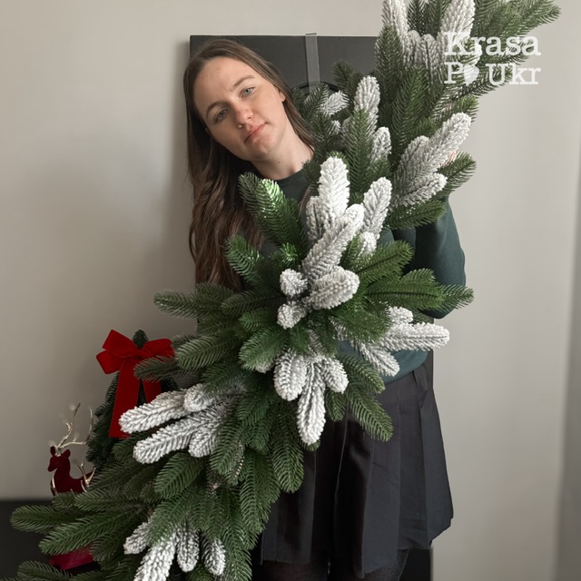 Набір – гірлянда 120 см + вінок 45-48 см “мікс”, засніжена та зелена лита хвоя
