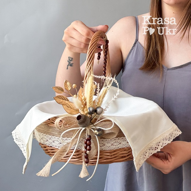Спасівський комплект корзинки (30 см) з серветкою, дизайн “натуральна гармонія”