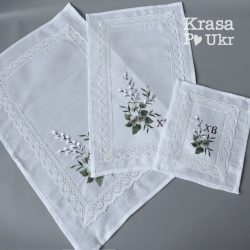 Комплект лляних серветок, дизайн “вербовий оберіг” – доросла (60*40 см або 48*30 см) та дитяча (25*20 см)