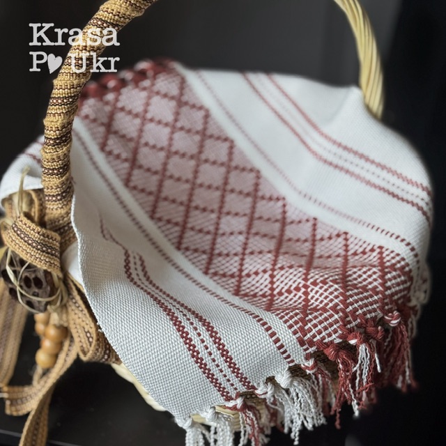 НАБІР – великодній кошик 34*26 см з етно декором, дизайн “крайка-буси-сухоцвіти” та рушник