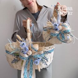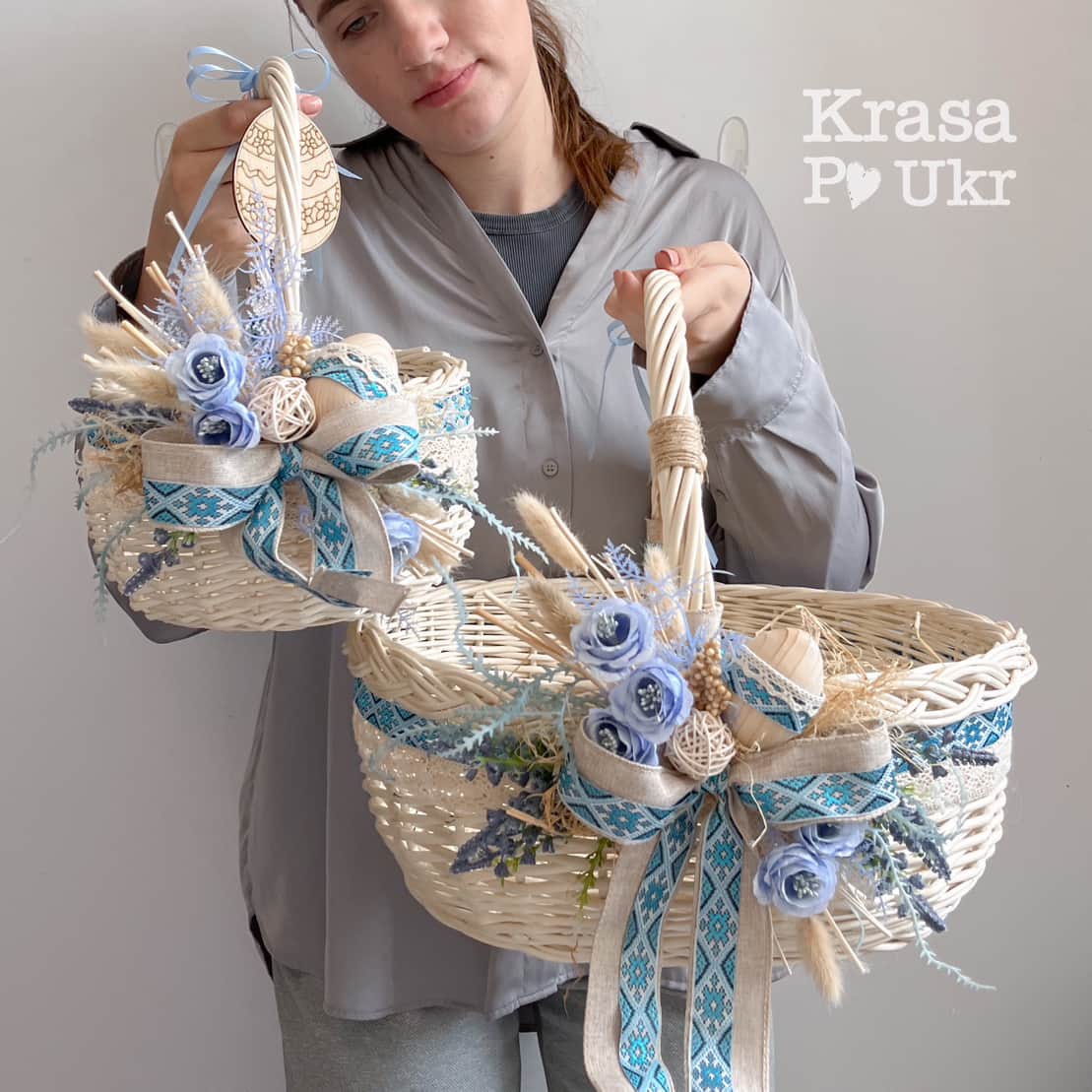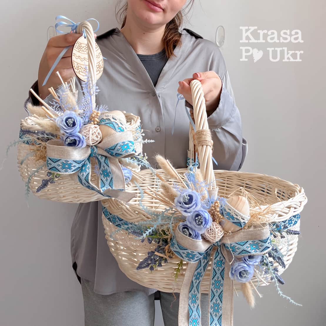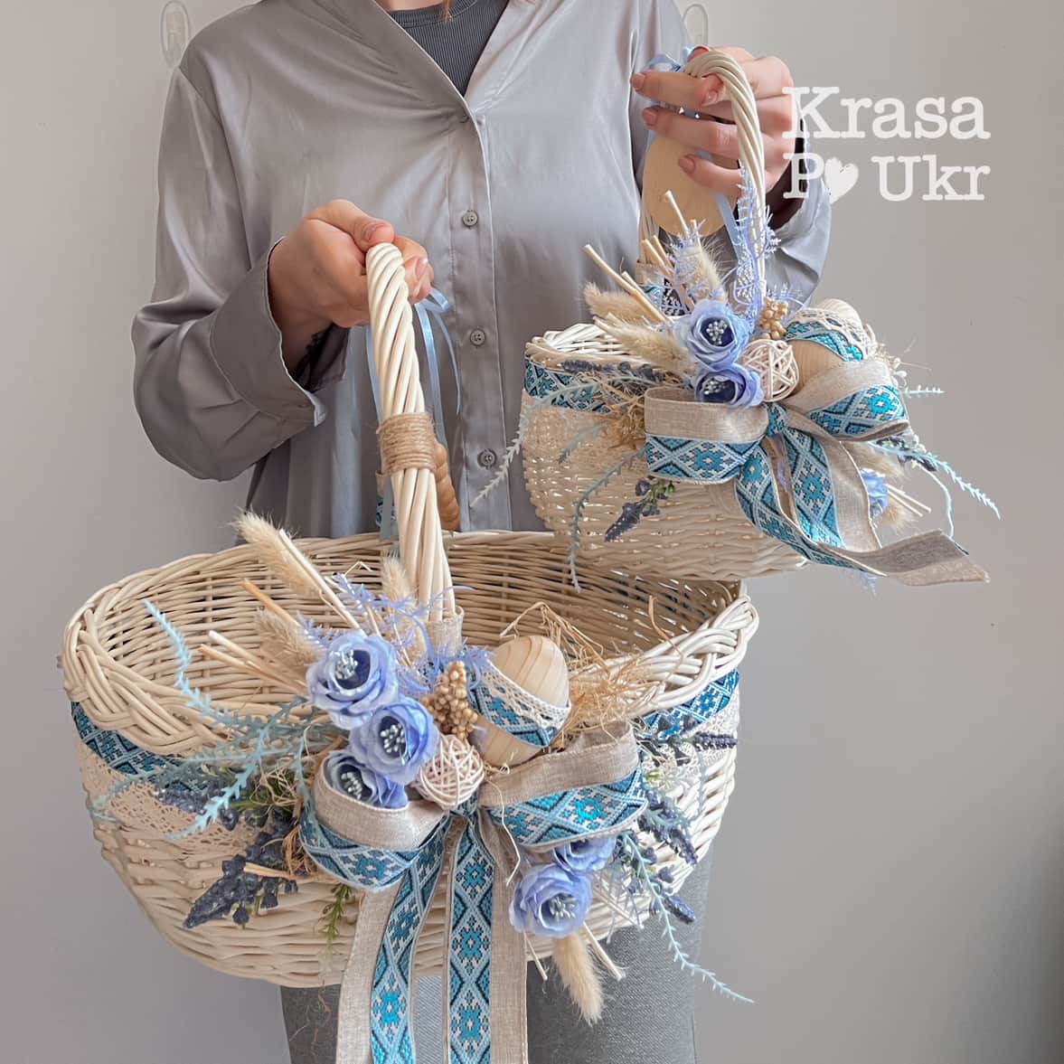Великодній комплект кошиків “мама-дитина” – 38 см та 20 см, дизайн “блакитна вишиванка”