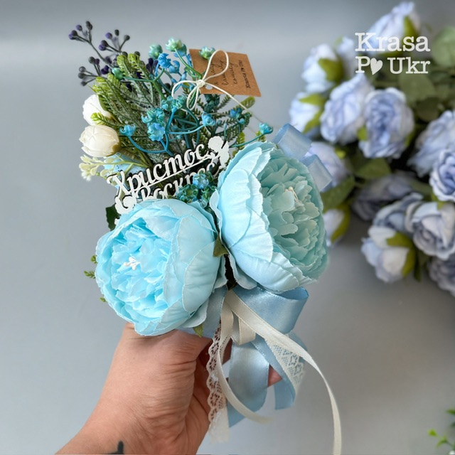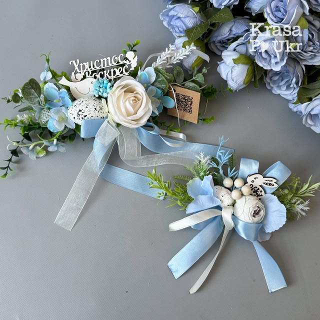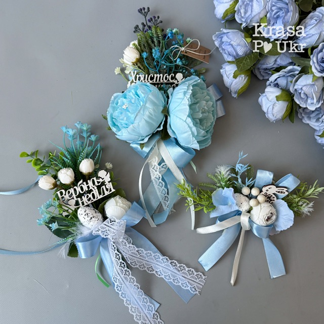 До компекту входить – декор на дорослий кошик, на дитячий, декор на вербу (комплектація на вибір).