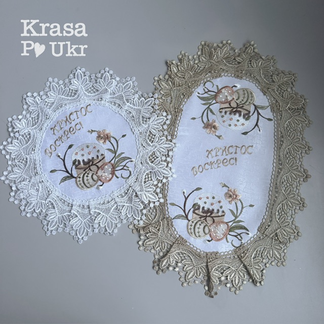 Вишиті атласні серветки “Пастельна Пасочка” (42*30 см і 30 см)