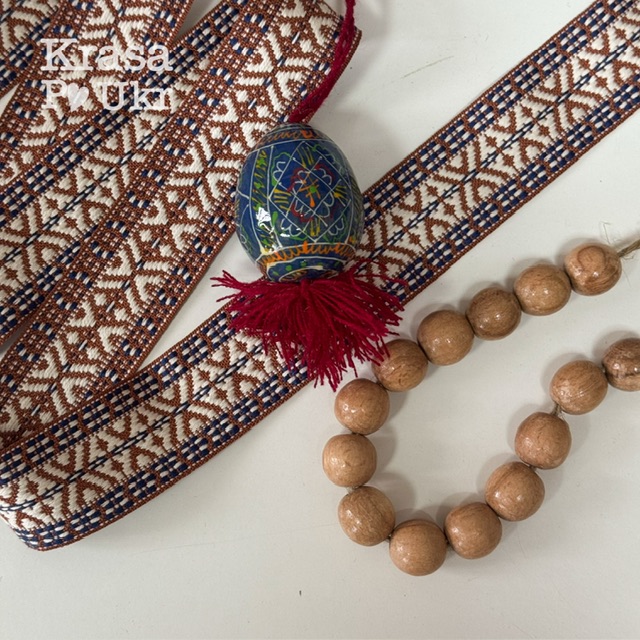 Комплект для декору кошика – вишита стрічка, буси, писанка (+ кераміка опціонально) – дизайн “етно декор”