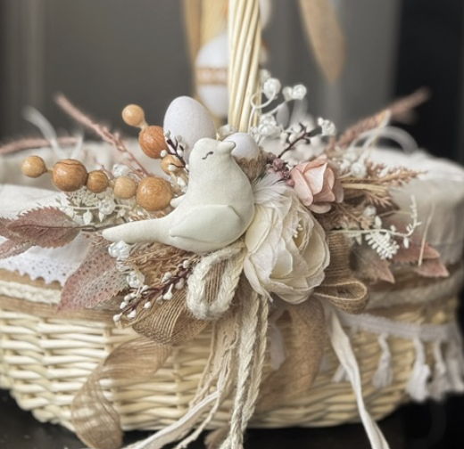 Великодній декор кошика, дизайн “пташка та квіти”