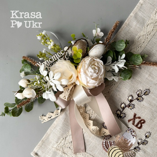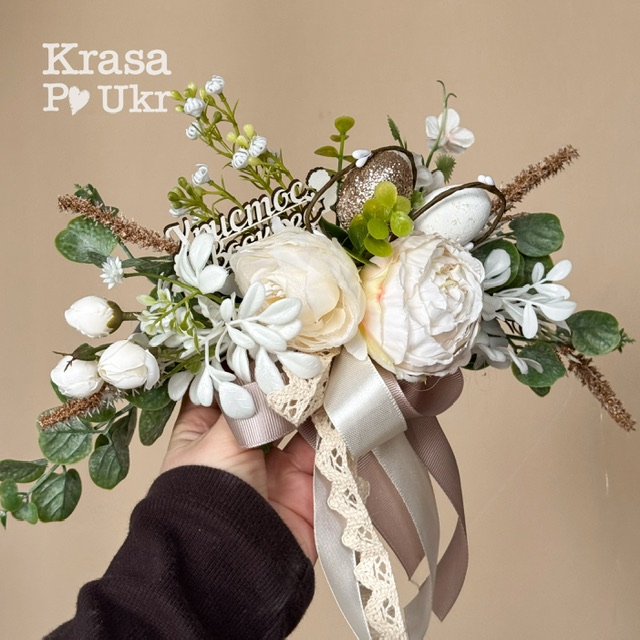 Пасхальний декор на кошик у молочних тонах “квіткова феєрія”