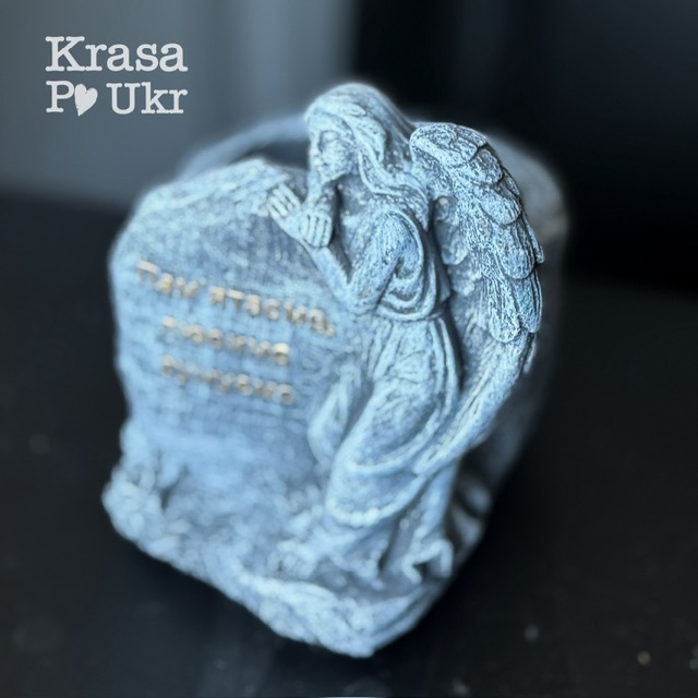 Декоративне кашпо з фігуркою ангела — зворушливий елемент для оформлення місця пам’яті на кладовищі.