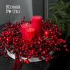 Моно-свічник у червоному кольорі, дизайн “калиновий оберіг” на керамічному підтарільнику