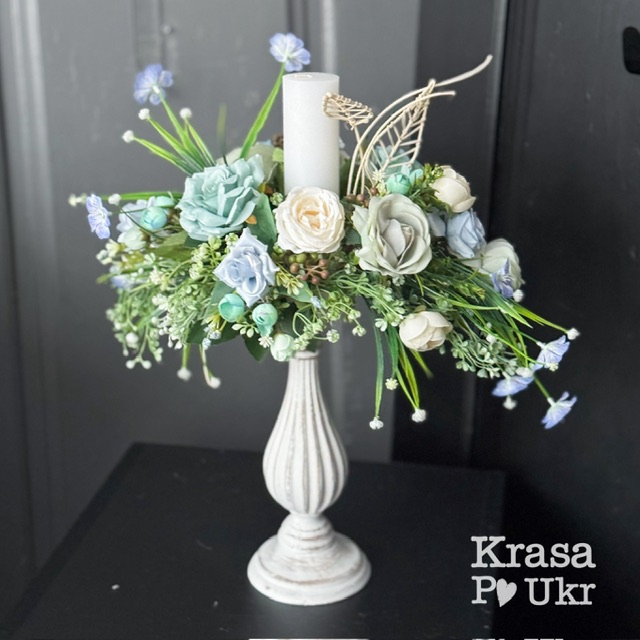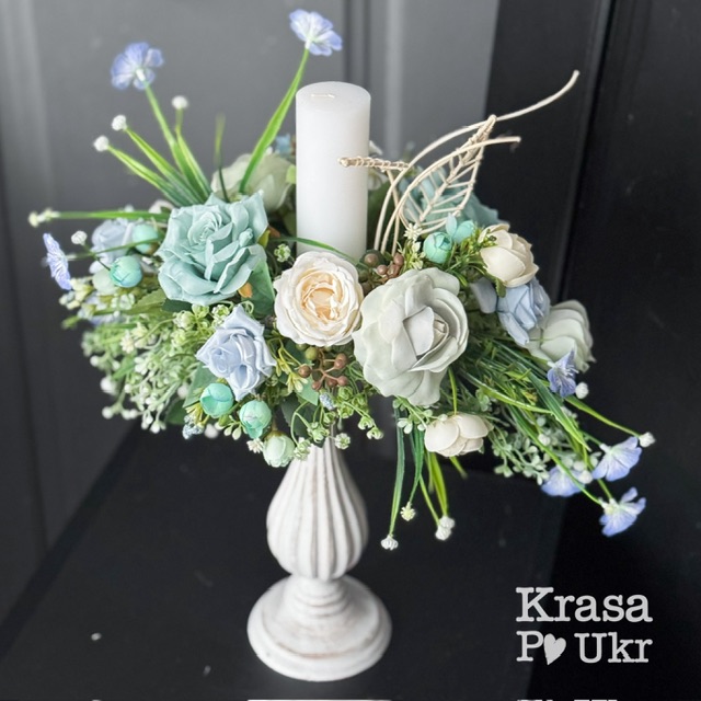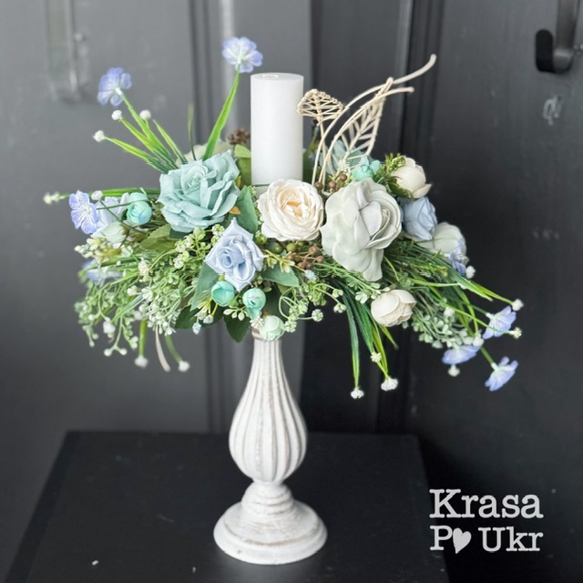 Великодня композиція-свічник, дизайн “блакитно-мʼяний градієнт”
