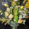 Великодня композиція “Це моя весна” з мімозою і тюльпанами та зайчиком